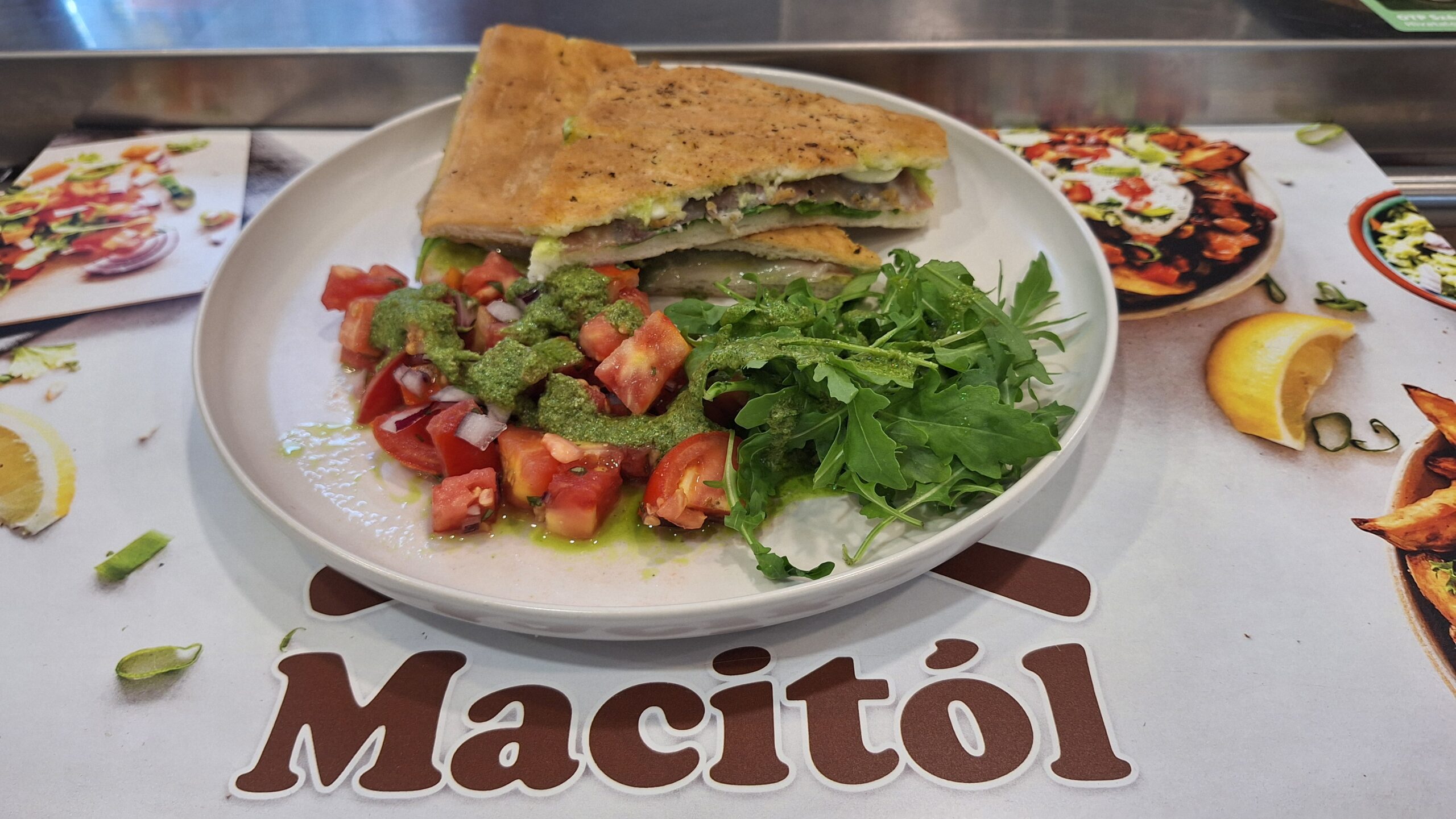 Termékről: aszalt paradicsomocsos focaccia, házi pesztòs majonéz, rukkola, prosciutto crudo, laktózmentes mozzarella