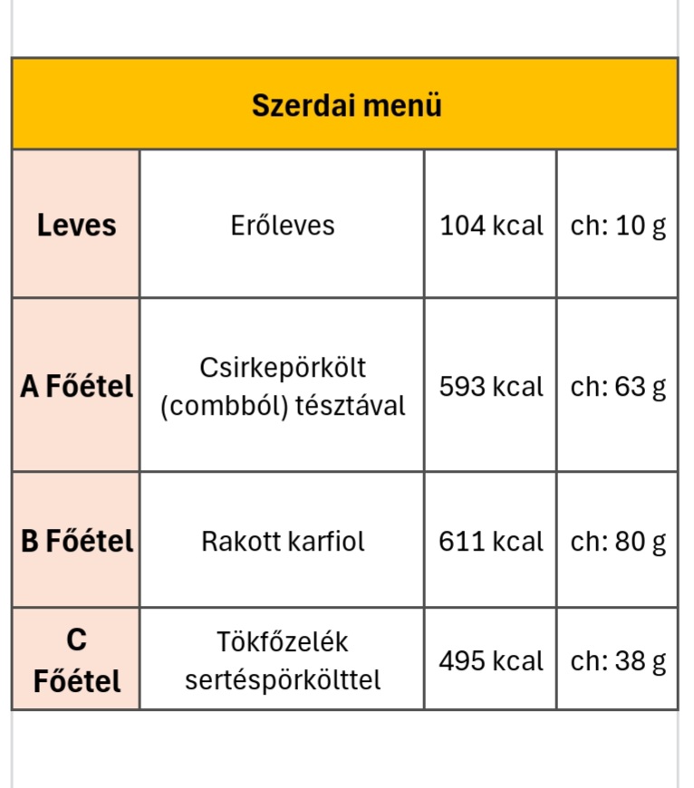 Szerdai menü